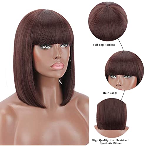 Kalyss - Parrucca da donna, lunga 30,5 cm, stile a caschetto, con frangia, capelli neri, resistente al calore, capelli sintetici Yaki, da donna
