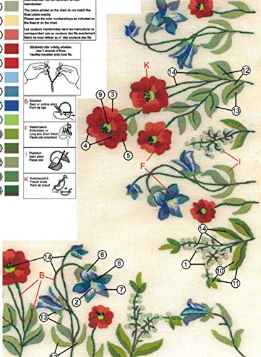 Questo set contiene il materiale completo: una tovaglia prestampata esattamente da 80 cm x 80 cm, istruzioni dettagliate per il ricamo raffigurate con grafica colorata, filo da ricamo sufficiente per colori e un ago da ricamo adatto al filo e alla tecnica di ricamo