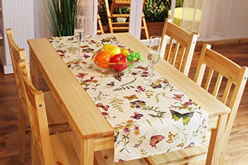 Eccellente Serie "Farfalle sul prato in fiore” su sfondo color crema dalle delicate tonalità pastello. Un gioiello per ogni spazio. Possibilità di scelta tra centro tavola, runner da tavola e federe.