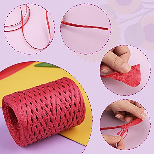La confezione include: nastro di carta Raffia rosso da 100 m. Confezionato su un rotolo, è molto comodo da usare. Puoi tagliarlo in base alla lunghezza di cui hai bisogno.