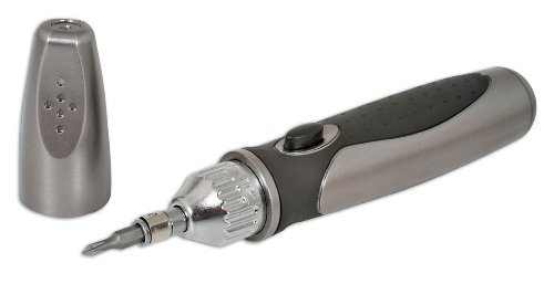Un cacciavite di precisione e un set di punte con una struttura di stoccaggio automatica della punta.