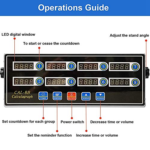 Kamay Timer da Cucina Digitale Professionale Un 8 Canali, Timer per Calcoli nel Acciaio Inossidabile Sveglia, Promemoria Orologio, Spina Europea