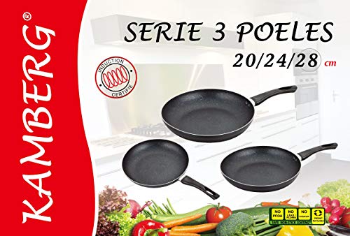 Kamberg 0008117 Set di 3 Padelle 20, 24, 28 cm, Alluminio Pressato, Rivestimento in Pietra, Compatibile con Tutti i Piani Cottura, Incluso Quello a Induzione, Senza PFOA