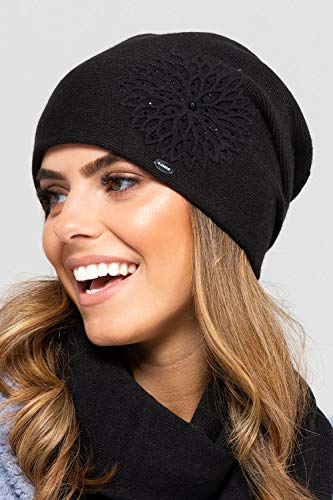 Kamea Giovana Cappello Femminile Monocolorato Elegante di Lana con Fiore, Nero,Uni