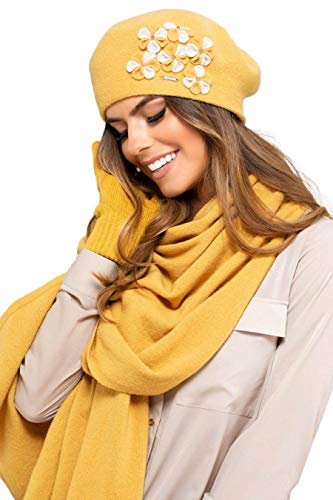 Kamea, Gorycja - Set invernale da donna, 2 pezzi, composto da sciarpa XXL e basco, foulard da spalla, giallo miele, Taglia unica
