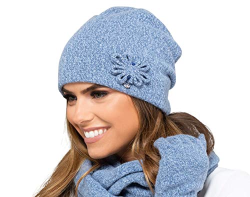 Kamea Kansas - Berretto invernale da donna, senza fantasia, con applicazione spessa jeans Taglia unica