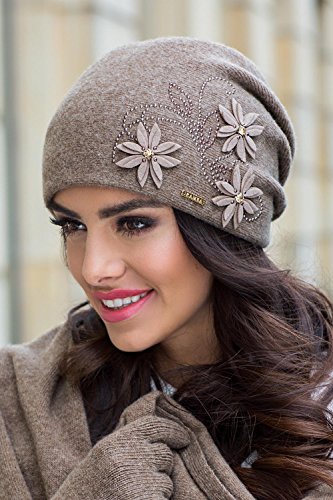 Kamea Lukrecja Cappello Femminile Monocolorato Invernale Con Fiorellin, Marrone,UNI