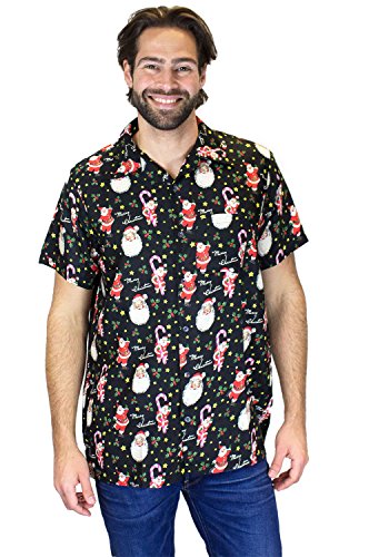 King Kameha | Funky Camicia Hawaiana Natale da Uomo | XS - 6XL | Maniche Corte | Tasca Frontale | Stampa Hawaiana | Natale Babbo Xmas Christmas