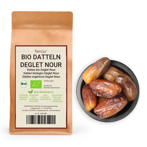 Kamelur Datteri Deglet Nour BIO Denocciolati: Datteri Naturali Essiccati Dalla Tunisia, Senza Alcun Additivo 1 Kg (Confezione Da 1)