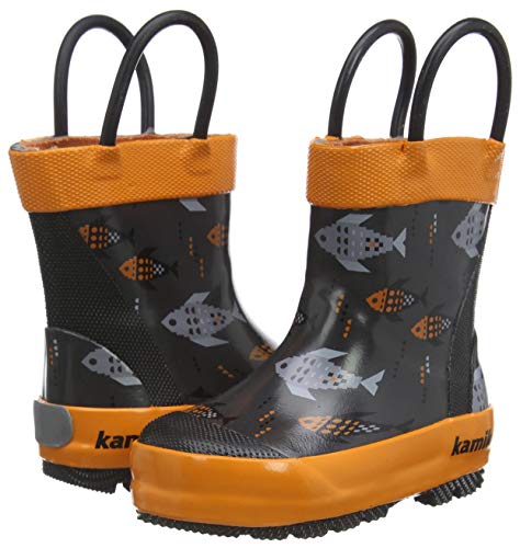 Kamik Fishride, Stivali di Gomma Unisex-Bambini, Grigio (Charcoal Orange Ch5), 20 EU