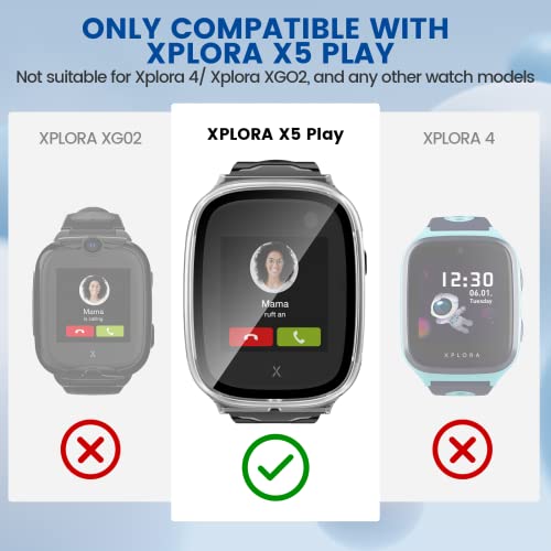 ✧【PROTEZIONE EFFICACEMENTE COMPLETA】 Il nostro orologio custodie per Xplora X5 Play può Covering quattro angoli e lati del vostro orologio, e il design di resistente agli urti e antigraffio può proteggere l'orologio da urti e graffi. La protezione dello schermo incorporata di durezza 9H, può fornire una protezione completa per il tuo Xplora X5 Play perfettamente senza compromettere la sua funzione, fornisce una migliore esperienza d'uso per te.