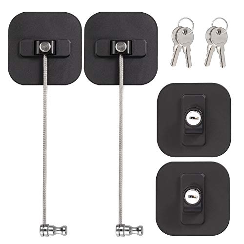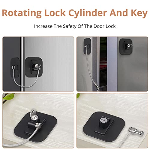 Kamtop 2PZ Cavo Limitatore Apertura per Porta Frigo Cassetto con 4 Chiavi Paio Serratura a Cilindro con Cavo 18CM Blocca Finestre Scorrevoli Porte Frigorifero Armadietto per Sicurezza Bambini - Nero