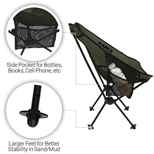 KAMUI - Sedia da campeggio portatile, compatta, leggera, pieghevole, con tasca laterale e piedini più grandi, ideale per spiaggia, campeggio, parco, picnic, all'aperto, verde
