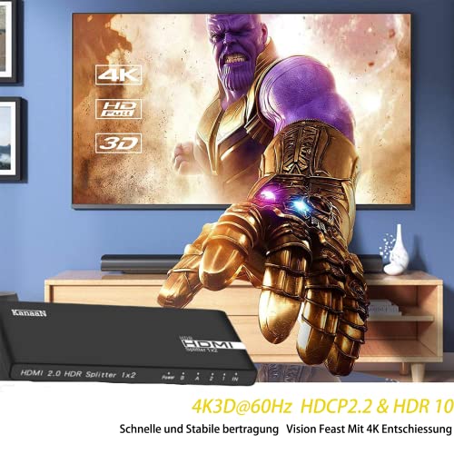 KanaaN HDMI 2.0 Matrix PS5 Switch Splitter 1X2 | 4K / 1080p | Supporta PS5, Notebook, memoria EDID, CEC, SP14HS, Dolby 5.1 /Dolby-TrueHD ecc. | Amplificatore di distribuzione per proiettore, TV HD