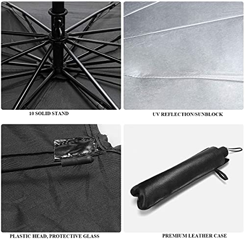 Facile da piegare e riporre: il parasole per parabrezza dell'auto può essere facilmente aperto e piegato in pochi secondi, proprio come un ombrello quotidiano. Può trovare facilmente il suo posto nel vano portaoggetti, nella scatola del cambio e nella scatola dei guanti (borsa portaoggetti fornita).