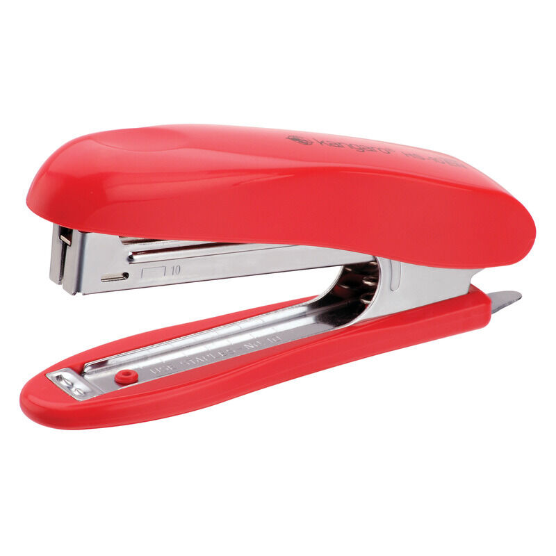 Pratica cucitrice in plastica per la casa e l'ufficio. Dispositivo in metallo con custodia in plastica. Spazio per riporre le graffette. Levapunti integrato. Capacità fino a 20 fogli.