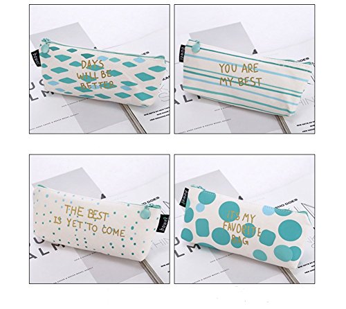 Kanggest Astuccio per matite in tela, di tendenza, motivo azzurro stampato per bambini, con cerniera, per cosmetici 20×8×4CM colore #2