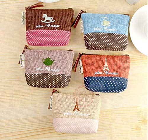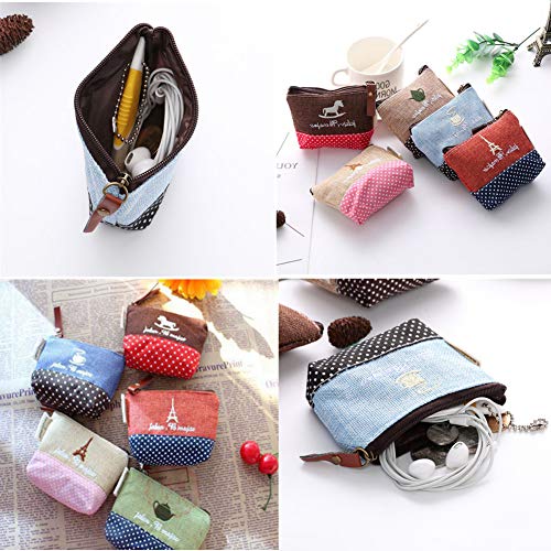 Kanggest - 5 borsetta da donna in cotone ricamato, perfette come necessaire o portamonete