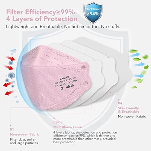 KANGLV Mascherine FFP2 Certificate CE, 3 Strati Mascherine 20 pezzi Confezionate Singolarmente, Filtrazione Efficace ≥94% CE 0598 EN 149:2001+A1:2009