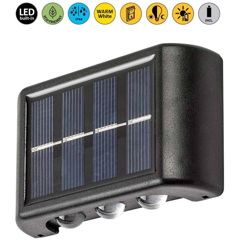 Wall lamp Kangton plastic LED 1.2W IP44 3000K L: 9cm B: 2.5cm H: 5.5cm with sensor Dimensions in mm: Length: 90, width: 25, height: 55, peso in kg: 0,055 Tipo di agente luminato/versione: LED Lampade contengono: Sì Prestazioni massime in Watt: 1.2w Colore della luce in Kelvin: 3000k Colore della luce: White caldo flusso inferiore in lume: 8 Classe di protezione: ip44 dimmbar: no switch: Sì Sensore: Sì materiale per la casa: plastica Colore abitativo: Nero Materiale vetro/picchi: Plastica Colore vetro/ombrello: Schwarz Informazioni aggiuntive: Sensore di luce