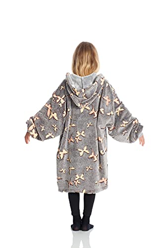 KANGURU GLOW COPERTA FELPA HOODIE CON CAPPUCCIO, KANGURONE IN 100% MICROFIBRA CON FARFALLE, TAGLIA BAMBINI 75X75 CM