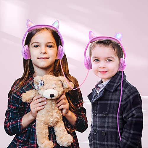 Kangxinsheng Cuffie per Bambini,Cuffie Gatto con LED,Cuffie Bambino con Filo,Cuffie da Gaming con Microfono,Pieghevoli Cuffie Bambina Over Ear per PC Laptop Telefoni Cellulari