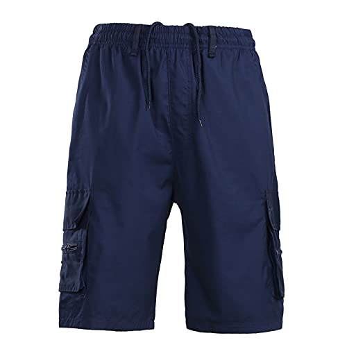 Kangyan Pantaloncini da uomo in cotone casual classico fit coulisse elastico in vita cargo corto estivo pantaloncini da spiaggia, Navy(c), XL