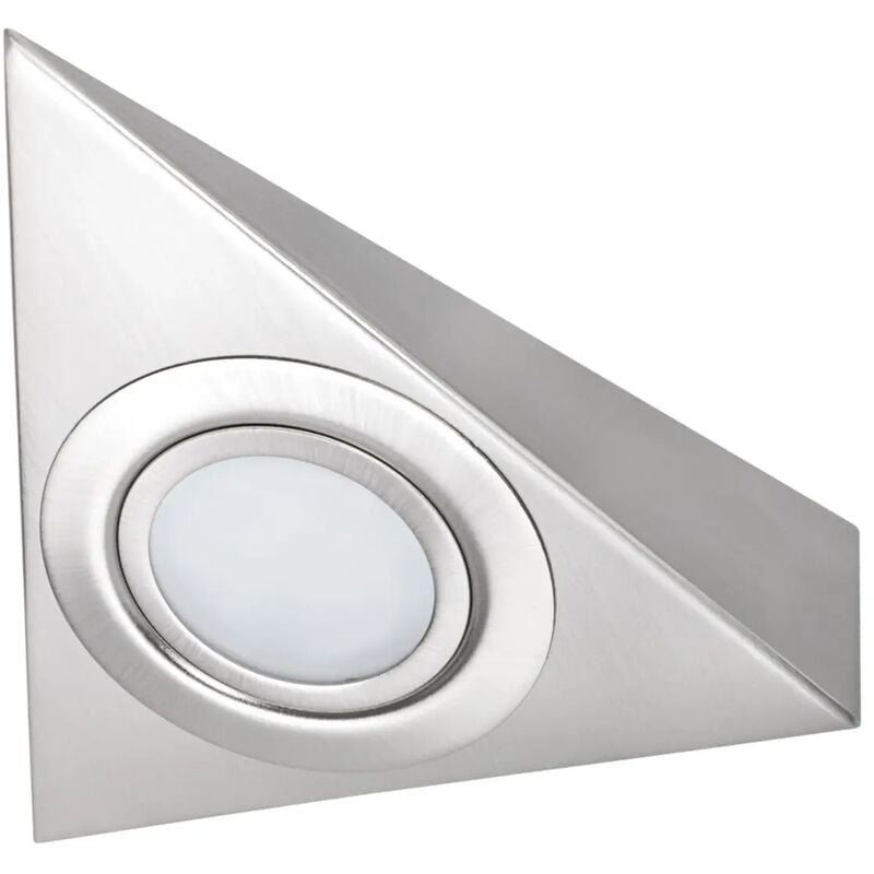 Faretto triangolare lampada sottopensile spot G4 cromo opaco senza interruttore lampadina non inclusa alimentazione 12 volt struttura in metallo e paralume in vetro lampadina non inclusa possibilità di utilizzare il prodotto con lampadina alogena o a led base 130 mm altezza 130 mm spessore 40 mm