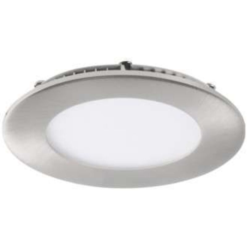 Pannello led incasso slim katro 6 watt nichel satinato tondo bianco naturale alimentazione 220-240 volt grado di protezione IP44/IP20 struttura in alluminio paralume in plastica non dimmerabile angolo apertura fascio luminoso 300° gradazione luce 4000 k utilizzato come illuminazione da controsoffitto, installabile nel cartongesso diametro 120 mm altezza 20 mm lumen 300