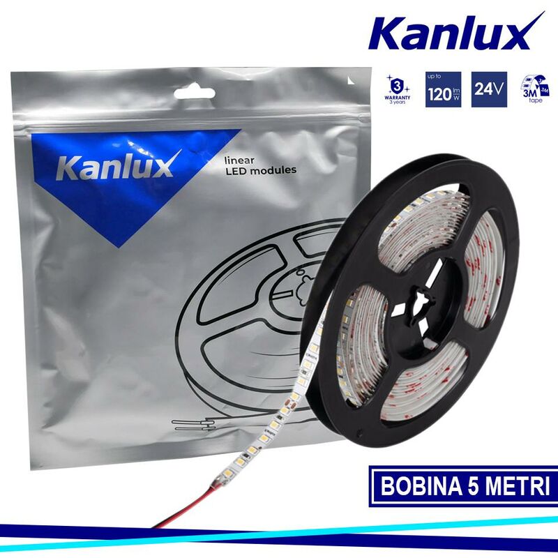 Nastro LED L120 16W/M 24 IP00-NW - Kanlux SKU: 33312 Caratteristiche del prodotto .Il nastro Kanlux L120 disponibile in due versioni: IP00 e IP65, in funzione del luogo di utilizzo (interni o esterni). La versione IP65 non differisce in modo significativo nelle dimensioni dalla versione IP00: caratteristica importante quando per il montaggio si utilizzano profili di alluminio. I nastri Kanlux L120 sono caratterizzati da un elevata efficienza luminosa (120 lumen per watt) e da una garanzia di tre anni. Specifiche tecniche: Informazioni di base = :EAN13=5905339333124:Luogo d'uso=all'interno: Peso e dimensioni = :Altezza [mm]=5000:Larghezza [mm]=8.2:Lunghezza [mm]=5000:Profondit? [mm]=2:Peso=76g:Unità di vendita=pezzo:Scatola collettiva=25: Funzioni aggiuntive = : = 3 anni di garanzia secondo le condizioni della dichiarazione di garanzia consultabile sul sito Internet : Dati tecnici = :Tensione nominale [V]=24V DC:Watt al metro=16:Grado di protezione contro le scosse