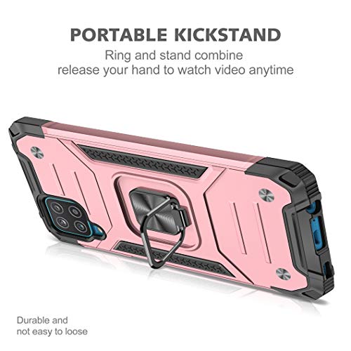 KANSi Cover compatibile per Samsung Galaxy A12 / M12, Vetro Temperato [2 Pack] Custodie Silicone TPU 360° Rotante Anello Magnetica Anello Ring Supporto Bumper per Samsung A12 / M12 - Rose Gold