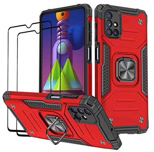KANSI Cover compatibile per Samsung Galaxy M51, in vetro temperato [2 pezzi] custodia in silicone TPU girevole a 360° magnete anello di supporto doppia difesa protezione custodia per Samsung M51