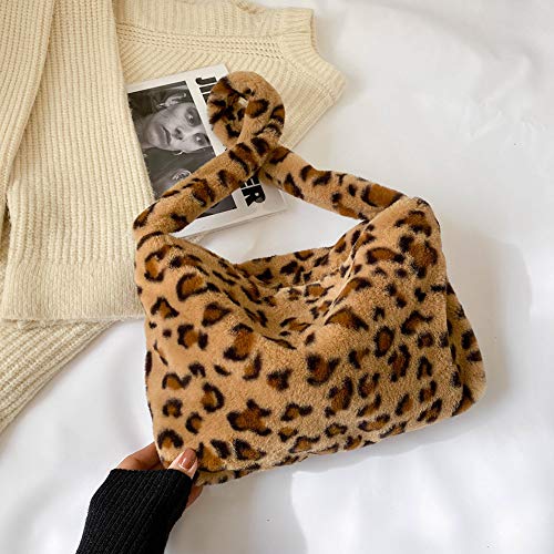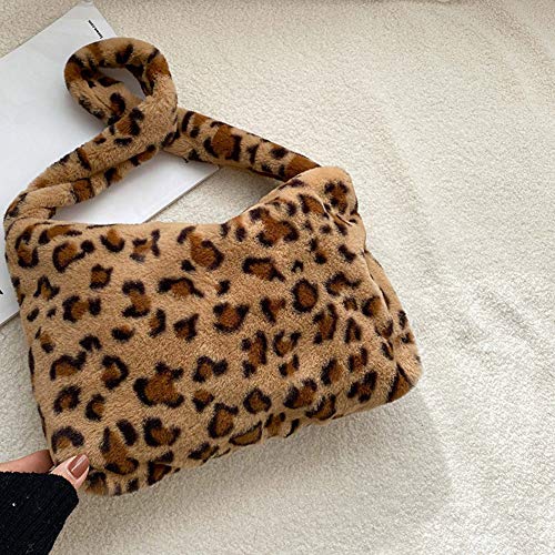 KANUBI - Borsa a tracolla in peluche, soffice, da donna, marrone chiaro, A