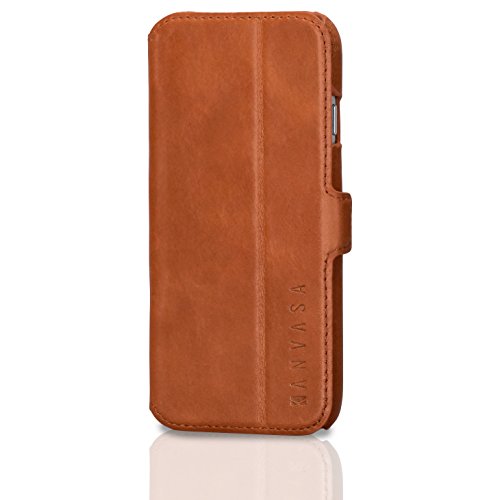 KANVASA iPhone 6/6s Custodia in Pelle a Portafoglio Marrone - Flip Cover Slim per Apple iPhone 6 / 6s (4.7") - Fabbricata in Autentica Pelle - Protezione ottimale & Cuoio Premium, Case Ultrasottile