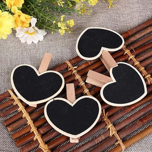 Kanyka 30 Mini lavagna legno messaggio Piccola Lavagnette Segnaposto Lavagna Legno Clip come targhetta Per Promemoria, Segni Numero Tavolo, Matrimonio, Bar, Etichetta Alimentare, Decorazioni Per Feste