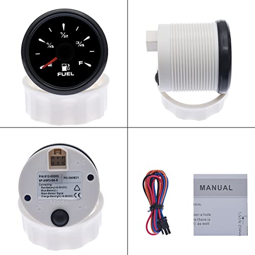 Diametro di installazione: 52 mm, indicazione della gamma: E-1/4-1/2-3/4-F. Tensione di funzionamento: 9 ~ 32 V CC, adatto per veicoli o motori da 12 V-24 V.