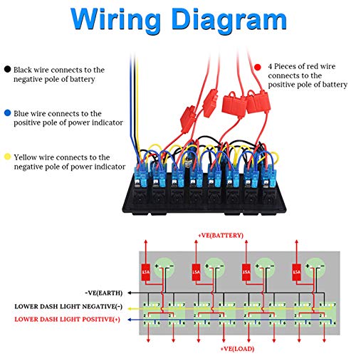 Ampia Applicazione:8 gang pannello interruttore bilanciere pre-cablato, facile da installare, adatto per auto universali, barche, camion, yacht, camper, autobus, campere, furgoni, ecc.