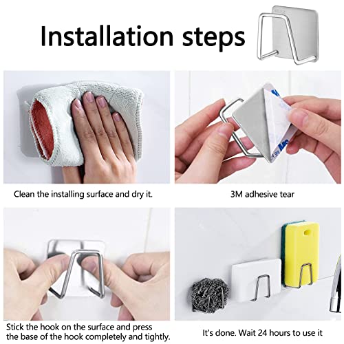 KAONESS 4 Pezzi Porta Spugna Supporto per Spugna Supporto in Spugna in Acciaio Inox Supporto per Tappo Lavello Supporto per Lavello Autoadesivo per Lavello da Cucina (Argento)