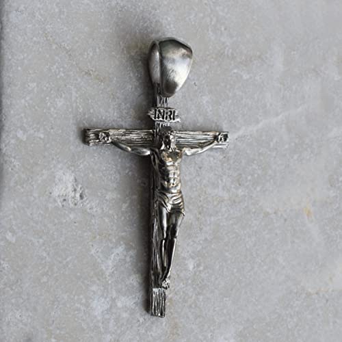 Il crocifisso misura circa 3,11 cm (inch. 1,22) di larghezza per 5,53 cm (inch.2,177)di altezza per un spessore di 5,4 mm (inch. 0,212), per un peso di 9,9 grammi (oz.0,349)