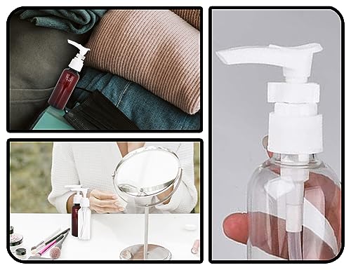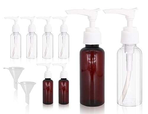 KAPSING Confezione da 6 Flaconi con Pompa da 50 ml Flaconi da Viaggio in Plastica Dispenser Adatto per Riempire da Viaggio Shampoo Gel Doccia (4 Flaconi Trasparenti + 2 Flaconi Marroni + 2 Imbuti)