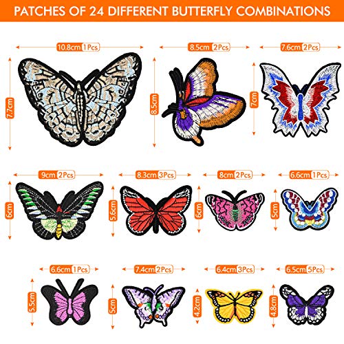 KARAA 24 Pezzi Farfalle Toppe Termoadesive, Adesivi Ricamato Distintivi in o Applicazioni per Tessuti Termoadesive Tessuto Applique Patch per Vestiti, Giacche, Zaini