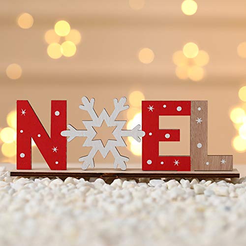 KARAA 2 targhette decorative, in legno, con scritta in lingua inglese "Noel/Snow", 23 cm, espositore, decorazione natalizia
