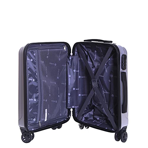 Karabar bagaglio valigia a mano rigido dura 54 cm 2,2 kg 31 litri con 4 ruote robuste, Monaco Argento