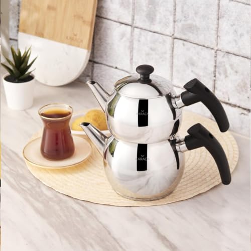 Karaca Adelya Set di teiere nere di piccole dimensioni, Realizzato in acciaio inossidabile 18/10, Materiale assolutamente antiruggine, capacità di 1,1 litri, Adatto a tutti i tipi di tè