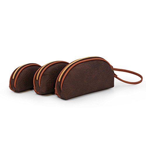 Set di tre borse cosmetiche.