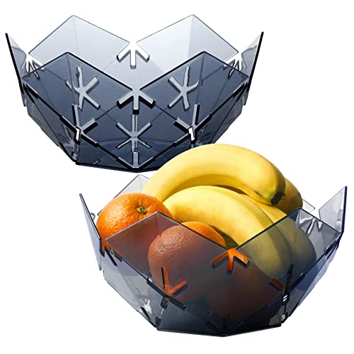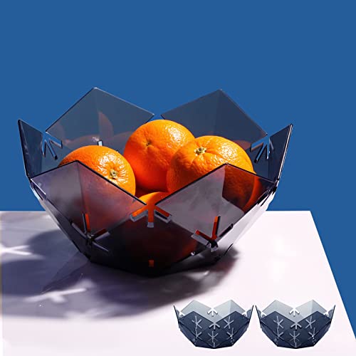 Karadrova Fruttiera in Plastica, Confezione da 2, 25 x 13 cm-Cestino per Frutta a Forma Geometrica, Senza Ruggine, Scavato, Portafrutta Decorativa per la Cucina - Blu
