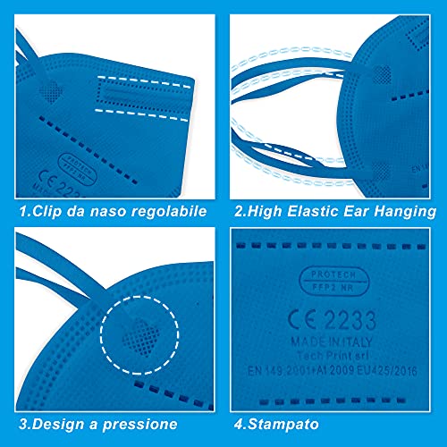 KARAEASY Mascherine ffp2 Turchese Certificate Ce Made In Italy Ffp2 Certificata CE 5 Stratti 50 Pezzi