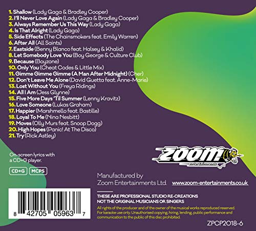 Zoom Karaoke CD+G - Pop Chart Picks 2018 (Part 6) inc. A Star Is Born + FREE Country Gentlemen CD+G