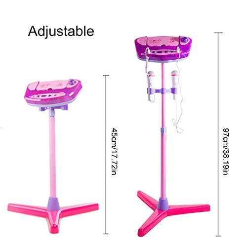 Karaoke Microfono Bambini, Hipsteen Microfono Karaoke Set con 2 microfoni supporto regolabile altoparlante Costruito in MP3 Jack Volume Melodie e applausi - Rosa
