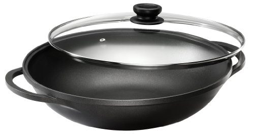 Tipo: wok in alluminio pressofuso per ortaggi, pasta e riso di ogni tipo - incl. coperchio in vetro con bordo in acciaio inox e valvola di sfiato del vapore nonché una vasta gamma di accessori composti da una griglia, una pinza di legno e un paio di bacchette